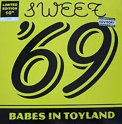 "Sweet '69" is a song by Babes in Toyland, released in 1995. B-sides, "S.F.W." and "Swamp Pussy", are live recordings from the Danish Roskilde Festival in 1994 by Radiomafia. "Sweet '69" is the first single by Babes in Toyland to get a lot of radio airplay in the US, reaching #37 on the Billboard Modern Rock chart. The single also peaked at #173 on the UK's Official Singles Chart.[1] The song is unique in its extensive use of melodic cowbells by drummer Lori Barbero. An accompanying video was also released.[2]