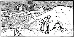 ![]() 1909 illustration. Residents eat their way back to the town through the mound of porridge. | |