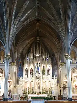 In 1890, construction began on "what would become the largest Catholic Church in Michigan."[3] Spier and Rohns designed the present structure. Kolasinski had formed the parish and raised the building funds for the rapidly growing parish. The cornerstone-laying ceremony was held on June 5, 1892, and on December 24, 1893, after construction costs of over $125,000, the church was officially dedicated. More than 10,000 people attended the dedication ceremony.[4]