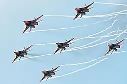 The Swifts (Russian: Стрижи, romanized: Strizhi) is an aerobatic demonstrator team of the Russian Air Force, formed on 6 May 1991. The team currently performs with 6 MiG-29/29UB aircraft.