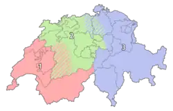 Group 1 contains teams from western Switzerland, which is generally French speaking. Group 2 contains teams from Central Switzerland, which is mostly German speaking. Group 3 contains teams from East Switzerland (and Liechtenstein) which contains German and Italian speaking regions.