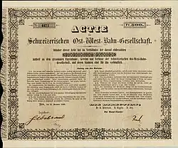 The Swiss East–West Railway (German: Schweizerische Ostwestbahn, OWB) was a former Swiss rail company, which planned to build a line to compete with the network of the Swiss Central Railway (German: Schweizerische Centralbahn, SCB) in central Switzerland on which construction commenced in 1857.