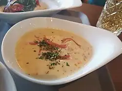 Food preferences vary within Switzerland, often reflecting languages: the German-speaking north and east (the predominant linguistic area) has strong ties with Central Europe, whereas the French-speaking west and the Italian-speaking south tend to have more ties with Western and Mediterranean Europe.[14] This applies notably to starchy foods, dairy products and fish. While potatoes, rice and pasta are commonly eaten everywhere in Switzerland, the proportion of pasta and rice is larger in the Italian-speaking regions.[15] Conversely, fats like cream and butter are eaten in larger proportions in the German-speaking regions.[16] Fish is also more commonly eaten in French- and Italian-speaking Switzerland.[14] Those differences are also noticeable in wine and beer drinking habits.