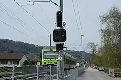 Swiss railway signalling describes the railway signalling systems used in Switzerland by the different railway companies. There are two main types of signal, used up to 160 km/h, above which speed cab signalling is required.