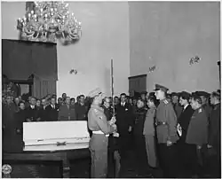 The official presentation was made while the Big Three wartime leaders were meeting in the Soviet embassy at the November 1943 Tehran Conference, where the final plans for Operation Overlord were being settled.[8]