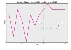 38. ^ "Big Bash League – Sydney Sixers / Records / Most matches as captain". ESPNcricinfo. ESPN Sports Media Ltd. Retrieved 27 January 2020.
