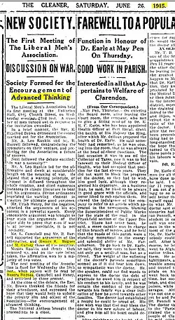 - ^ The Gleaner (Jamaica) 1915 June 26, page 21 - Sydney Bogues - Liberal Men's Meeting. Page 21