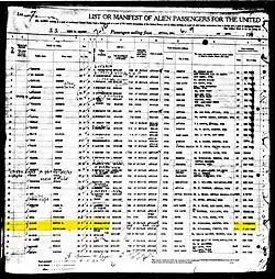 - ^ Ellis Island Archives - HED Bogues and family 1920 - Manifest Page 2 Manifest Page 2