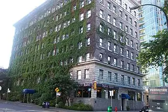 The Sylvia Hotel is a historic Vancouver, British Columbia, Canada landmark. Located at 1154 Gilford Street on English Bay near Stanley Park. Constructed in 1912, the Sylvia was designed as an apartment building by Mr. W.P. White, a Seattle architect. It was built by Booker, Campbell and Whipple Construction Company for a Mr. Goldstein, who had a daughter named Sylvia. During the Depression the Sylvia Court Apartments fell on hard times, and in 1936 the building was converted into an apartment hotel. With the advent of World War II, many of the suites were converted to rooms, to provide accommodation for crews of the merchant marine.