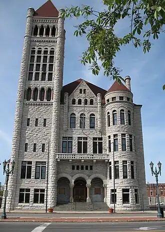 Unusually for civic buildings in the United States, it was constructed from 1889 to 1893 in the Romanesque Revival architectural style. The bid accepted for the construction was for $238,750.00 from Hughes Brothers of Syracuse.[2]