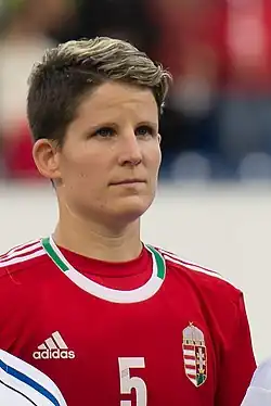 Tímea Gál is a Hungarian football defender currently playing for AS Volos in the Greek A Division.[1] She previously played in the Hungarian First League for MTK Hungária FC, with whom she also played the Champions League, and she is a member of the Hungarian national team.[2]