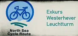 On the dyke around Tümlau Bay runs a cycle path which is signposted Exkurs Westerhever Leuchtturm ("Westerhever Lighthouse Excursion"). It is part of the North Sea Cycle Route (Nordseeküsten-Radweg).