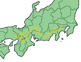 The Tōkai Nature Trail (東海自然歩道, Tōkai Shizen Hodō) is a long-distance walkway that traverses 11 prefectures and covers 1,697 kilometres (1,054 mi), running from Meiji no Mori Takao Quasi-National Park in Tokyo to Meiji no Mori Minō Quasi-National Park in Osaka Prefecture. Hiking the entire trail usually takes 40 to 50 days.[1]