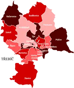 Třebíč consists of 17 municipal parts (in brackets population according to the 2021 census):[2]