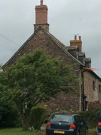 The architectural historian John Newman describes Tŷ Mawr as "an unusually complete 17th century farm complex."[3] The farmhouse is of stone, with two storeys,[3] and to a "3-cell" plan, with a hall and parlour separated by a pantry.[1] The south gable has a datestone inscribed "Hec domus, facta fuit, per W.W., Anno Domini, 1640". The farmhouse has a Grade II* listing.[1] The gatehouse, which has its own Grade II* listing,[4] is constructed of red brick laid in English bond while the barn attached to the farm is of Flemish bond brick.[3]