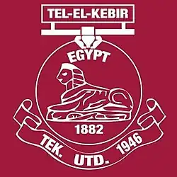 T.E.K's name, as detailed by their crest, is an allusion to the 1882 Battle of Tell El Kebir, in which the British Army under Anglo-Irish General Garnet Wolseley, 1st Viscount Wolseley recorded a resounding victory over Khedivate of Egypt forces of Ahmed ʻUrabi in what is now Egypt.[4] While the club doesn't directly take its name from the battle, its name is linked to that of a nearby local dairy company, Sutton's T.E.K. Dairy, whose founder had fought at the battle.[5][6] More direct references to the battle can be seen in T.E.K's badge, which features an image of the Sphinx as well as the year 1882 and the words 'EGYPT' and 'TEL-EL-KEBIR'.