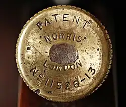 Under patent 11,526 of 13 July 1913 Norris sought protection for his "Adjustment for Plane Irons". The 1914 Norris price list gives an outline explanation, whereas the HMSO report published in 1921 gives a full description of the mechanism.[14]