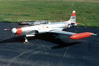The Lockheed T-33 Shooting Star (or T-Bird) is an American subsonic jet trainer. It was produced by Lockheed and made its first flight in 1948. The T-33 was developed from the Lockheed P-80/F-80 starting as TP-80C/TF-80C in development, then designated T-33A. It was used by the U.S. Navy initially as TO-2, then TV-2, and after 1962, T-33B. The last operator of the T-33, the Bolivian Air Force, retired the type in July 2017, after 44 years of service.[1]