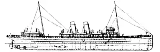 She had three propellers, each powered by a Parsons steam turbine. Between them they were rated at 800 RHP[3] and gave her a speed of 21 knots (39 km/h).[4]