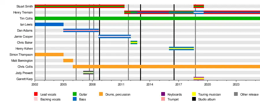 • Stuart Smith – lead vocals, guitar (2002–2011, 2018–2019)