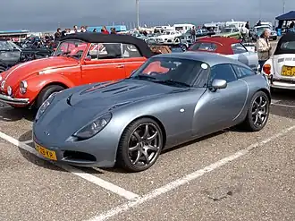 The TVR T350 is a sports car manufactured by British company TVR from 2002 to 2006. It is based on the Tamora, and is powered by TVR's Speed Six engine displacing 3.6 litre form, rated at 350 hp (261 kW). The T350 was available in coupe and targa versions, the coupe version being known as the T350c, and the targa version the T350t. The T350 later formed the base of the Sagaris.[2]