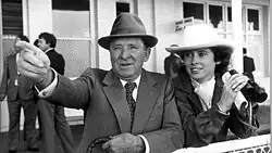 Smith became a trainer, acquiring his licence in 1941. His first success came in 1942 with Bragger a rogue horse he bought from Wagga property owner Mack Sawyer. He broke in the horse, and named him using his own nickname. Smith also registered racing silks of green and blue vertical stripes, which were to become famous in later years as the colours of Tulloch Lodge horses. He rented horse boxes in Kensington, housing Bragger in one box, while he lived in the other. According to Bill Whittaker, Smith won the nomination fee for Bragger by winning at two-up.[1] Bragger won 13 races including Smith's first Group 1 winner in the 1946 Railway Quality, establishing him as a Sydney trainer and Smith won a significant amount of money backing Bragger to win races. But when Bragger went for a spell, Smith blew all of his winnings on flashy suits, hired cars and drinking. Almost broke, Smith was saved when Bragger returned from his spell and won. After this episode Smith never went broke again. Bragger continued to win races until he was a ten-year-old, when he had to be destroyed after becoming caught in a float fire on his way home from a race meeting.[2][3]