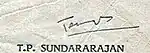 T.P. Sundararajan (20 April 1941 – 17 July 2011) was an Indian lawyer. Sundararajan was a born in the town of Ambasamudram in Tirunelveli district of Tamil Nadu. He was a prolific student and earned his Indian Police Service, IPS. He went on to graduate in law from Government Law College, Trivandrum. Early in his career he had held key positions in the national Intelligence Bureau and Ministry of Home Affairs.