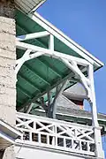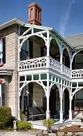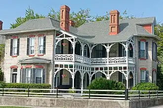 Built in 1885 according to the Florida Department of State's Division of Historical Resources, the house is "...2 and a half stories, 2-story veranda with carved posts and brackets..." and is built from bricks made of concrete and local shells.[2] Although lovingly referred to as "The Tabby House" by its owners and local residents, the building materials are not, strictly speaking, tabby, which is a mixture of lime, sand, water, and crushed oyster shells. This house is listed on the US National Historic Register and is a beautiful example of Victorian architecture.