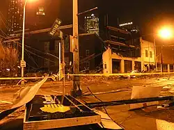 On March 14, 2008, the Tabernacle sustained extensive damage when a tornado tore through downtown Atlanta. Windows were blown out and the roof was severely damaged. A broken water pipe caused additional damage.[41] It was the first tornado to hit the downtown area since weather record keeping began in late 1878, or unofficially at any time in the city's history.[42]