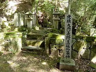 ![]() The graves of Ōuchi Yoshitaka and his valet in the grounds of Tainei-ji, Nagato, Yamaguchi | |||||||