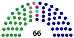 New Taipei City Council (traditional Chinese: 新北市議會; simplified Chinese: 新北市议会; pinyin: Xīnběi Shì Yìhuì) is the city council of New Taipei City, Taiwan. It is now composed of 66 councillors,[1] all recently elected on 26 November 2022 in the local elections. Along with the Kaohsiung City Council, the city council is the largest local council in terms of seats.