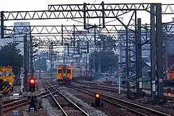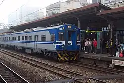 Construction of railway service on Taiwan began between Keelung and Hsinchu in 1887 under the Qing dynasty and was significantly expanded by the Railway Department under Japanese occupation.[5] As a result, Japanese influence and heritage persists to this day on Taiwanese railways.[6] Similarities between TR and the Japan Railways (JR) companies can be found in signal aspects, signage, track layout, fare controls, station architecture, and operating procedures. As Japan's southern base during World War II, Taiwan's railways suffered significant damage by Allied air raids. Following the surrender of Japan in the aftermath of World War II, the Taiwan Railways Administration was established on 5 March 1948 to reconstruct and operate railway infrastructure, with Lang Chung-lai as its first director-general.[7]