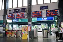 Taipei metro shows substantial integration with the network, reflecting Taipei's close municipal central government relationship. Taipei Rapid Transit Corporation's (TRTC) Tamsui–Xinyi line was converted from Tamsui railway line, while Bannan line and Songshan–Xindian line roughly follow the TR mainline[49] and the former Xindian railway line. TR accepts metro farecards within metropolitan Taipei. Four metro lines converge at Taipei Main Station, making subways the local distribution system of TR. New intercity bus terminals were constructed near Taipei Main Station in 2009.[50] Like NJ Transit’s Newark and LIRR’s Jamaica stations, Banqiao and Nankang interchanges afford TR penetration into western and eastern neighbourhoods without long hackney rides or backtracking.