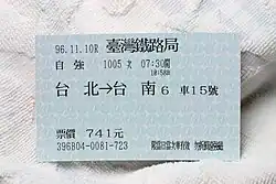 - ^ 車票資訊 – 票價計算原則 [Ticket Policy Information: Fare Computation Principle]. Taiwan Railways Administration. 11 December 2008. Retrieved 24 October 2010.