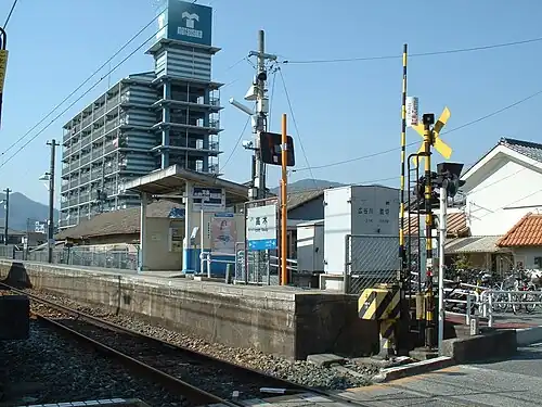 The station consists of one side platform serving a single bi-directional track. There is no station building and the station is unattended. An automatic ticket vending machine is installed in the waiting area on the platform.[2]