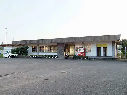 The station is served by the Kitto Line and is located 17.8 km from the starting point of the line at Miyakonojō.[3]