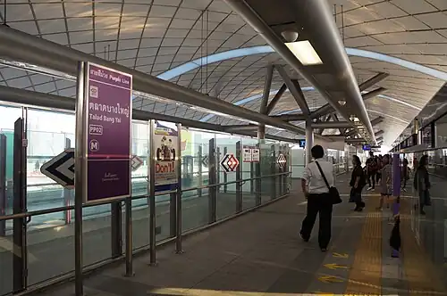 Talad Bang Yai station (Thai: สถานีตลาดบางใหญ่, RTGSSathani Talat Bang Yai, pronounced [sā.tʰǎː.nīː tā.làːt bāːŋ jàj]) is a station on the Purple Line of the Bangkok MRT, located in Bang Yai, Nonthaburi Province. The station connects to Central WestGate shopping mall, one of the largest shopping mall in the country.