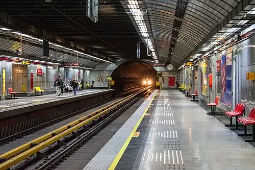 Taleghani Metro Station is a station in Tehran Metro Line 1. It is located in the junction of Takhte Jamshid Street and Dr. Mofatteh Street. It is between Darvaze Dolat Metro Station and Haft-e-Tir Metro Station.