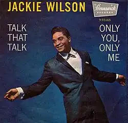 Talk That Talk is a 1959 hit song written for Jackie Wilson by Sid Wyche. It was released, with Only You, Only Me as the B-side, on Brunswick Records in the US and in the UK on Coral Records.[1][2][3] It was on the release of "Talk That Talk" that Wilson met his second wife Lynn.[4] "Talk That Talk" reached #3 in R&B and #34 in pop charts.[5] Wilson recorded the song with chorus and orchestra under Decca Records' veteran arranger Dick Jacobs. Jacobs was criticised for the "cleaned up" sound of using white backing singers, but defended the decision as driven by the limited number of formally trained backing singers available at the time.[6]