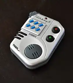 Talkboy is a line of handheld voice recorder and sound novelty toys manufactured by Tiger Electronics in the 1990s.[1] The brand began as a result of a promotional tie-in with the 1992 film Home Alone 2: Lost in New York; the most well-known product was the Deluxe Talkboy, a cassette recorder and player with a variable-speed voice changer that caused toy crazes over several holiday shopping seasons beginning in 1993.