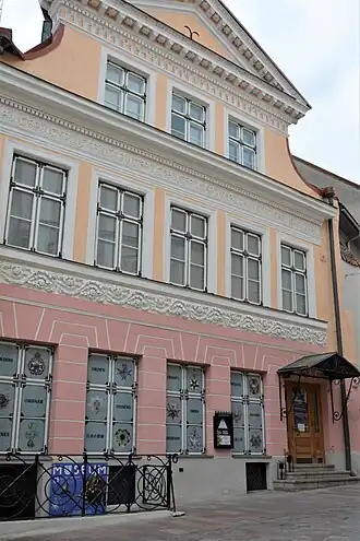 The Tallinn Museum of Orders of Knighthood (Estonian: Tallinna Rüütliordude Muuseum) is a private museum of history and culture in Tallinn, Estonia.[1] The main focus of the museum is the history of orders of knighthood and merit from all over the world. The museum is located in a historical medieval building at Kuninga 3 in Tallinn Old Town, and the permanent exhibition consists of close to a thousand original costumes, collars, stars, badges and other items related to orders of knighthood with the oldest exhibits dating to the beginning of the 18th century.[2]