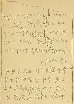 - ^ a b Letter from Professor Wright, 15 December, 1886; in the Proceedings of the Society of Biblical Archaeology: "Among the objects from Cyprus exhibited during the past summer at the Colonial Exhibition were two bilingual inscriptions, Phoenician and Cypriote, the property of Colonel F. Warren, R.A., who discovered them during his excavations at Frangissa... The longer and better preserved of these has been translated and published by the well known archaeologist M. D. Pierides, though without the Phoenician text... The smaller of Colonel Warren's two bilinguals is not nearly so well preserved, especially as regards the upper or Phoenician portion. I have sent a squeeze of it to Professor Euting, who will no doubt succeed in deciphering it with Dr. Deecke's help."