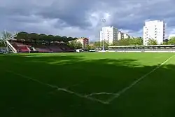 The history of the stadium dates back to 1926, when the city council of Tampere decided to build a football field in Tammela. Progress, however, was slow due to limited funds, and the situation worsened during the economic depression of the late 1920s and early 1930s. Despite these setbacks, the field officially opened in 1931, though it didn't resemble a stadium until 1937 when the first stand was constructed.[1] In 1993, the stands were expanded to a nominal capacity of 5,050, with only the main stand offering 1,300 numbered seats. The stadium's attendance record was set on October 2, 1994, when 5,490 spectators attended a match between TPV and HJK.