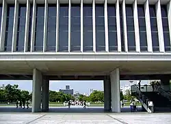 Tange was awarded first prize for a design that proposed a museum whose axis runs through the park, intersecting Peace Boulevard and the atomic bomb dome. The building is raised on massive columns, which frame the view along the structure's axis.[10]