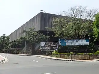 The Tanghalang Francisco Balagtas (English: Francisco Balagtas Theater), formerly known as the Folk Arts Theater, was a theater located in the Cultural Center of the Philippines Complex in Malate, Manila. It is a covered proscenium amphitheater owned by the Cultural Center of the Philippines that was a popular venue for concerts during the 1980s and 1990s.[2][3] The theater, named after Filipino poet Francisco Balagtas, has a seating capacity of 8,458 in 10 sections and features a broad fascia with a single column-to-column span of 80 meters (260 ft). It is the largest single-span structure in the country, with a 100-by-100-meter (330 ft × 330 ft) roof resting on eight monumental columns.[3] In her book "Cultural Center of the Philippines: Crystal Years," Visitacion de la Torre described it as a sheltered plaza with a roof that "appears to float, creating the impression that the building is a dream on one's tender hands."[3]