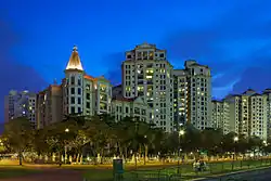 - Fortredale, a 19-storey condominium which stood at the junction of Tanjong Rhu Road and Fort Road. Architect and academic Robert Powell wrote in 2000 that the "eye-catching" tower block "stands apart for its strongly individualistic expression." He further wrote that it "exudes confidence and defiance of convention" and "struts its stuff along Tanjong Rhu Road while its neighbours look, in comparison, aesthetically geriatric."[10]