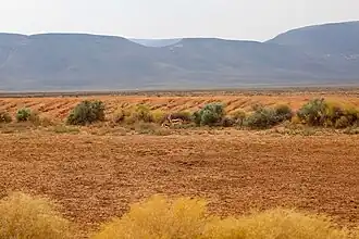 It is bounded on the east by the Roggeveld Mountains, on the west by the Cederberg, to the north by the Kouebokkeveld Mountains and on the south by the scattered foothills of the Koedoesberge and Klein Roggeveld Mountains, and the Tankwa River.[3] The park's headquarters are located at Roodewerf. Distances from the nearest towns to the park's headquarters are: Ceres (180 km), Sutherland (120 km), Calvinia (110 km) and Middelpos (52 km).[4]
