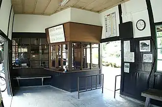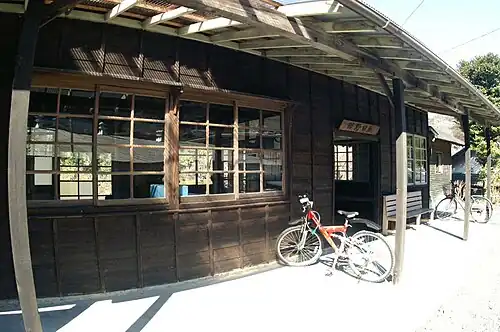 The station has a single island platform connected to a small wooden station building by a level crossing. The station is unattended. It retains much of the atmosphere of the early Shōwa period and is often used as a set for movies and TV dramas.