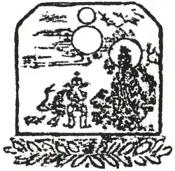 A Taoist charm from either the Jin or Yuan dynasty without any written text shows what is commonly believed to be either a "boy under a pine tree" (松下童子) or a "boy worshipping an immortal" (童子拜仙人), but an alternative hypothesis is that this charm depicts a meeting between Laozi and Zhang Daoling. This is based on the fact that the figure supposedly representing Zhang Daoling is carrying a cane which in Mandarin Chinese is a homophone for "Zhang". On the reverse side of the charm are the twelve Chinese zodiacs, each in a circle surrounded by what is referred to as "auspicious clouds" which number eight.[9]