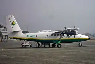 The DHC-6 Twin Otter was a Series 400 version built in 2012 by Viking Air with manufacturer's serial number 926.[6] In September 2015, it was delivered to Tara Air and registered 9N-AHH.[7][6][8]